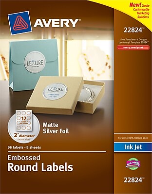 Avery® Print-to-the-Edge Oval Labels Avery No. Description Tags/Pack AVE 22802 2" x 3-1/2", White, Print-to-the-Edge 96 AVE 22824 2" Diameter, Silver 96 Avery® Embossed Foil Round Labels ... Fetch Content